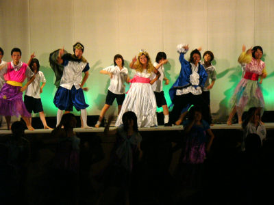 | アイデア賞は2年7組のパルテノン神殿、空き缶を2800個も使った労作です。 | ステージ部門の1位は2年5組のシンデレラ。 |