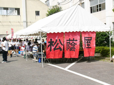 模擬店「松蔭屋」は3年生有志とPTAの運営。みたらし、タコ焼き、水餃子、焼きそばなどを提供しました。