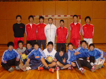 | 試合前のミーティング | 試合後にみんなで記念撮影 |