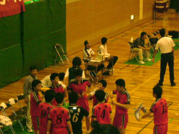 男子は準々決勝でまたもや王者愛知高校と対戦。新人戦の準々決勝では、松蔭の良いところが一つも出せずに敗退しただけに、今回は気合い十分の戦いぶりでした。終始松蔭のペースで試合は進み、後半の最後に力尽きて突き放されたものの、王者を十分に慌てさせる試合でした。