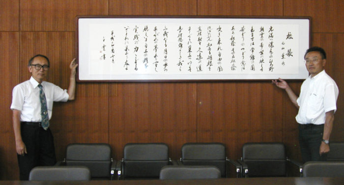 7月28日(木)日展の書道作家、天野白雲(天野広美)先生より、本校の校歌額を寄贈していただきました。