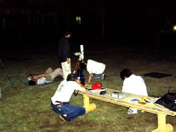 1日目の夜に,天頂にある夏の大三角形(わし座のアルタイル,こと座のベガ,はくちょう座のデネブ)ははっきり見ることができましたが,高度の低い星座はガスがかかり見えませんでした。昨年購入した新しい自動望遠鏡の使い方もマスターできました。