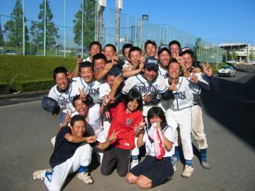 主戦佐藤克哉君は五試合目なので体力、集中力とも限界に近かった。しかし、名電に勝つにはエースに頼らざるをえない。初回から名電のスピードある機動力と強打で3点先取され主導権を握られたが、4回に広江、代打の辻君の適時打で3点をあげ1点差に迫った。この日は辻君が守備でも大活躍。しかし、猛暑と毎回バンドでゆさぶられ、疲れがピークに達した佐藤君に名電が猛攻撃。結局7回コールドで力尽きた。バントと機動力を絡めたスピードあるきめ細かな名電野球に、地力の違いを見せつけられた。できれば1日空けて対戦したかった。でも、名前負けせず全力でぶつかり、堂上選手にも逃げずに勝負した松蔭野球にエールを送りたい。完全燃焼!よくやった!!