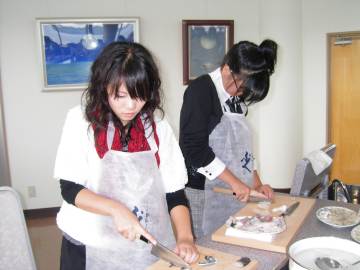 ふぐ調理体験、なかなか難しい