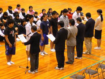 県大会団体メンバー:三宅俊浩君、宮原貴弥君、沢海 真君、坂口晃逸君
