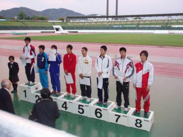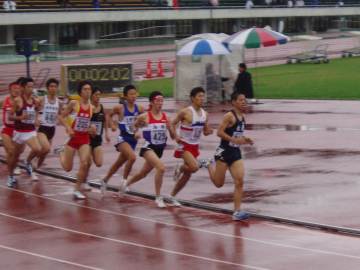 また、石田忍矢君(2年生)は、800mと1500mの2種目に出場しました。雨の中で行われた1500m予選では、前半から積極的にレースをひっぱったものの、ラストスパートで遅れをとり、あと1人のところで、惜しくも決勝進出を逃しました。佐藤・石田君を始め部員達は、来年の全国高校総体へ向けて、早くも新たな闘志を燃やし、練習に励んでいます。