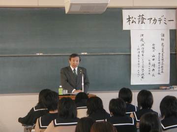 12月8日(土)午前中に昨年度から始まった「松蔭アカデミー」が引き続き今年度も本校視聴覚室で開催されました。社会で活躍されている卒業生を講師としてお招きし、名前の通り日頃は聞けないお話を生徒だけでなく保護者、卒業生が聞く行事です。
