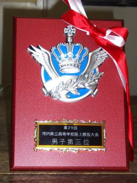 8/5(火)、名古屋市内県立高校陸上競技会が、瑞穂陸上競技場で行われました。本校陸上部は、暑い日差しの中、ほぼ全員が自己ベスト記録を更新し、その結果、男子が総合3位に入賞しました。中でも、酒井翼くん(2年)は、200m競走において、22秒79のタイムで優勝をしました。