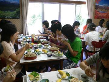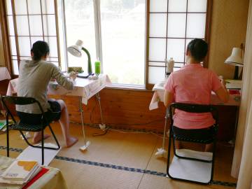 今年の参加者は63名、例年と同じく長野県大町市美麻の新行高原で4軒の民宿に分宿し、涼しい静かな環境のもとで、1日10時間以上の学習にチャレンジしました。