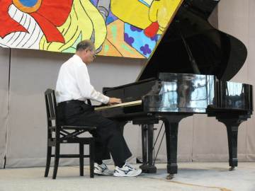 | 開会式では学校長がピアノ演奏を披露しました | 学校紹介の部屋では中学生向けの説明会が行われました |