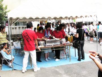 | 最優秀賞は2年7組「ピンクピーチもも」 | 保護者、3年生有志による模擬店「松蔭屋」 |