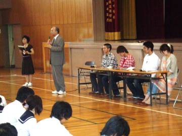 6月8日(月)に、この春に卒業した4人の卒業生を講師として迎え、「合格者を囲む会」が開催されました。学校長が紹介をしたあと、卒業生4人が自分の受験生活を振り返って、合格体験談を話してくれました。3年生は、先輩たちの体験談を熱心に聞いていました。