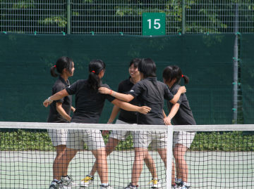 女子テニス部は、2回戦で三河地区優勝校の南山国際戦に勝利し、ベスト8進出を果たしました。続いて行われた準々決勝では私立の強豪校、名経大高蔵に敗れてしまいましたが、ベスト8は愛知県の公立高校ではNo1の結果でした。