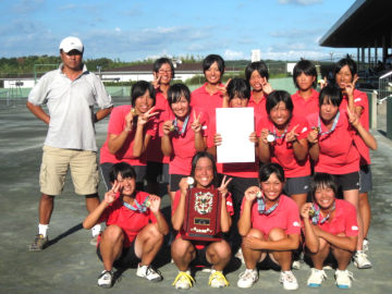 8/3(火)、名古屋市内県立高校テニス大会が、日進市の口論議運動公園庭球場で行われました。本校女子テニス部は、主将伊藤を中心に日頃の練習で培った力を存分に発揮し、一昨年に続いて2度目の優勝を果たしました。