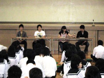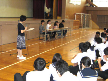 6月14日(月)に、この春に卒業した4人の卒業生を講師として迎え、「合格者を囲む会」が開催されました。教頭が紹介をしたあと、卒業生4人が自分の受験生活を振り返って、合格体験談を話してくれました。3年生は、先輩たちの体験談を熱心に聞いていました。