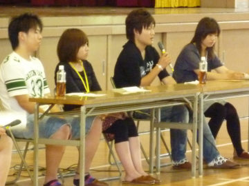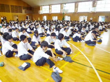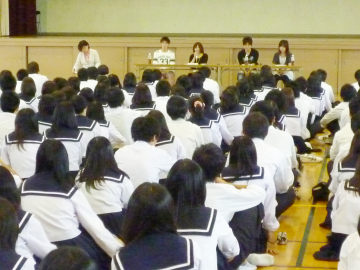 6月13日(月)に、この春大学に合格した4人の卒業生を講師として迎え、「合格者を囲む会」が開催されました。校長先生の紹介のあと、卒業生が自分の受験生活を振り返って、合格体験談を話してくれました。3年生は、先輩たちの体験談を熱心に聞いていました。