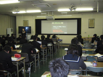 3月5日(月)の午後、1年生を対象に学部・学科説明会が開催されました。大学の先生方を講師としてお招きし、自分の進路希望に沿った学部・学科の説明を聞く行事です。今年度は次の20講座を設定し、1年生全員が2つの講座で話を聞きました。