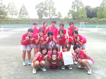 8/2(木)、名古屋市内県立高校テニス大会が、日進市の口論議運動公園庭球場で行われました。本校女子テニス部は、主将高月を中心に日頃の練習で培った力を存分に発揮し、一昨年に続いて3度目の優勝を果たしました。