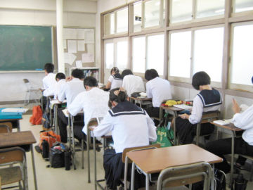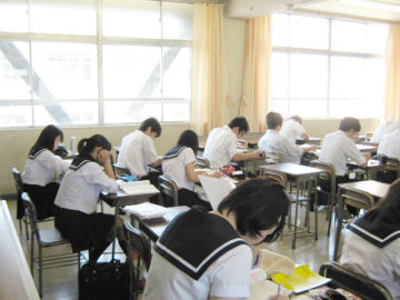 夏真っ盛りの8/3(金)・8/6(月)〜8/9(木)の5日間、3年生の希望者を対象に実力養成質問講座が開催され、約90名の生徒が参加しました。これは、空調の入った快適な環境の中で、各生徒が立てた学習計画に従って、自学自習を基本とし、長時間の学習にチャレンジするというものです。
