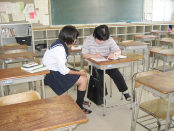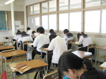 隣の教室や職員室などには各教科の先生が待機し、いつでも質問に答えられるような体制を整えています。参加者は携帯電話やICプレーヤー持ち込み禁止というルールのもと、互いに刺激を受けながら真剣に学習していました。
