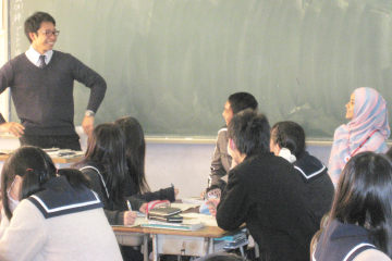 11月21日(水)午後、インドネシアから青少年赤十字のメンバー、Reza Hardian(レザ君17歳)とRininta Rolia Sita(アリンさん17歳)が来校されました。6限は、1年6組の英語の授業に参加しました。