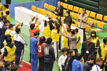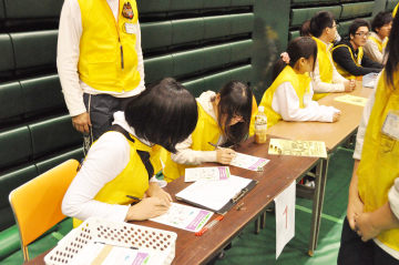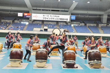 11月18日(日)に愛知県体育館で行われた第11回あいち障害者フライングディスク競技大会に、ボランティアスタッフとして、本校のJRC部、野球部、女子サッカー部、男子硬式テニス部の総勢81名で参加しました。オープニングセレモニーでは、和太鼓部の演奏で大会を盛り上げました。