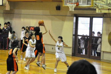 私たち女子バスケットボール部は、1月12,13日に平成24年度名南支部高等学校新人体育大会に出場しました。一回戦は日頃の練習の成果を発揮し勝利を掴みましたが、続く二回戦では力及ばず敗退しました。また、次の大会に向けてチーム一丸となり再び頑張っていきたいと思いますので、応援をよろしくお願いします。