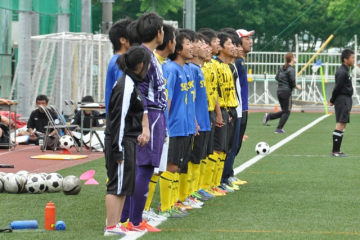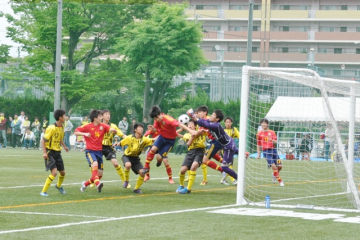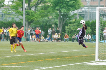 5月26日、悲願の決勝リーグ進出をかけた準々決勝の相手は名古屋高校。会場は名古屋高校のホームグランド。今にも雨が降りそうな中でゲームは始まった。開始早々から名古屋高校の激しい攻めが何度もゴールを脅かす。キーパーの好セーブとチーム一丸になった守備で耐えに耐えて0対0で前半終了。