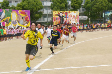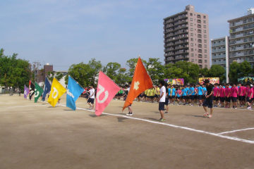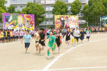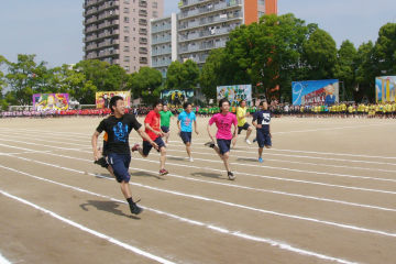 6月5日、日差しは強いもののさわやかな風が吹く天候のもと、「〜みんなが主役〜輝け松蔭生」をテーマに体育祭が開催されました。松蔭の体育祭は各学年1クラスずつの縦割り3クラスでひとつの「群団」をつくり,競技,群団発表,衣装,パネル,マスコットなどを競います。約1000人の保護者、卒業生の見守る中、2週間の準備の成果を披露しました。