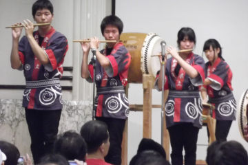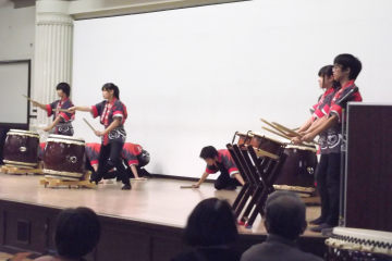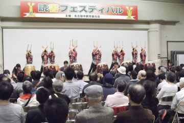 11月4日(祝)に、名古屋市教育委員会主催の「読書フェスティバル」にお招き頂き、「エンカウンター」始め全3曲を演奏させて頂きました。SKE48のメンバーやノーベル賞受賞者の益川先生との対談にも和太鼓部員2名が参加させて頂き、読書について考える有意義な一日となりました。