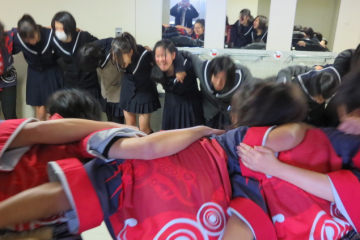1,2年生全員円陣を組んで気合い入れ |