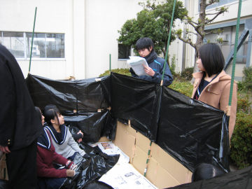 ダンボールハウスでどの程度寒さがしのげるか、プラバシーを保持できるかといった点を配慮して、考えながら作り上げました。