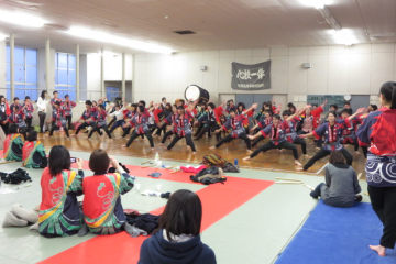 交流演奏の締めくくりは、もちろん「南中ソーラン」。卒業生及び部員60名超えの踊りは圧巻で、卒業生の皆さんの和太鼓部に対する熱い思いがひしひしと伝わって来ました。