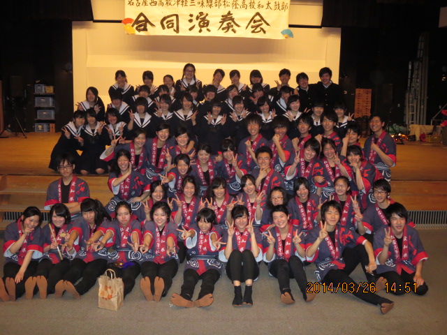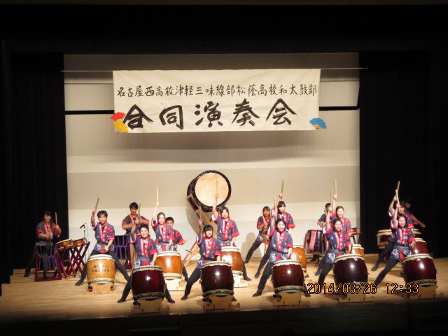 和太鼓部、名古屋西高校津軽三味線部と合同演奏会
