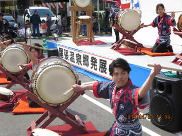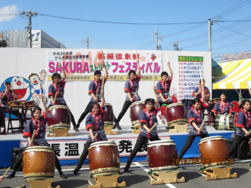 桜満開の会場で大勢のお客様と一緒に和太鼓の演奏を楽しむことができました。