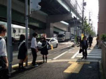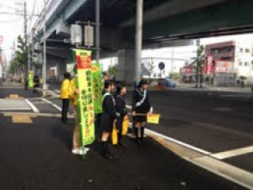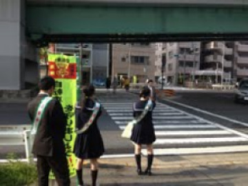 5月9日(金)朝、JRC部を中心に中村警察と合同で、畑江通7の交差点に立ち、交通安全指導を行いました。