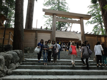 6月30日(月)に、PTA会員31名と職員3名の合計34名が三重大学を訪問しました。大学側からは生物資源学部と教育学部の学習内容と本校卒業の4回生2名による大学生活の様子の説明があり、会員の皆さんは大変熱心に聞き入っていました。午後は式年遷宮で新しく建て替えられた伊勢神宮内宮へ参拝し、大学の合格を祈願しました。