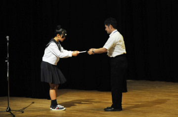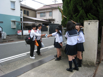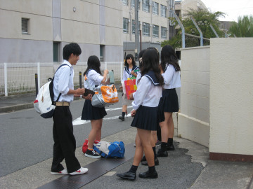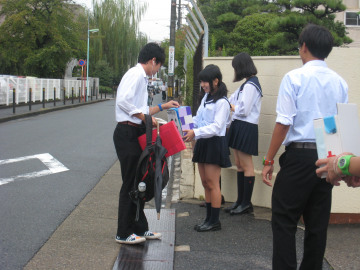 平成26年8月19日からの大雨災害により被害を受けた、広島県広島市の被災者の方々への援護の一助として、修学旅行委員とJRC部は募金活動を行いました。文化祭と9月末の始業前に活動を行い、計4日間で4万円もの義援金が集まりました。ご協力を頂き、誠に有り難うございました。修学旅行の1日目に広島市市民局国際平和推進部平和推進課の戸根さんに直接お渡しすることが出来ました。