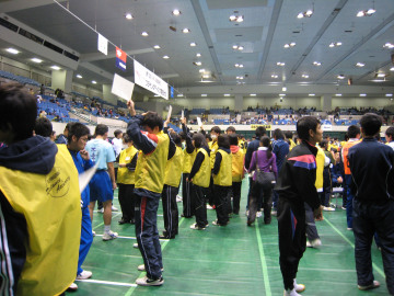 11月16日(日)、愛知県体育館で行われたFDボランティアとして今年も参加しました。 オープニングイベントでは、和太鼓部の演奏が会場を盛り上げました。野球部は審判、来賓対応をし、女子サッカー部1年生と男子硬式テニス部は選手の誘導をし、JRC部は競技結果の記録を行いました。 他校の高校生や大学生とコミュニケーションをとりながら、笑顔で対応していた姿が印象的でした。
