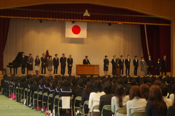4月6日(月)、360名の新入生を迎えて入学式が行われました。旧制中川中學以来75年の伝統を持つ松蔭高校にまた新たな若い力が加わりました。新入生が、生徒会行事、部活動、そして学習面で大いに活躍し、新たな松蔭高校の歴史を築いてくれることを期待します。