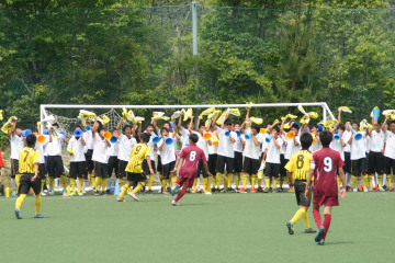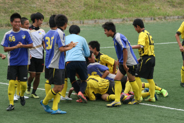 松蔭高校サッカー部男子は、5月23日(土)、学泉大学グラウンドで三好高校とベスト8をかけて戦った。前半早々に先取点を奪いそのまま前半終了。後半、続けざまに2点を奪われ逆転。そのまま敗戦かと思いきや、終了直前に粘りを見せ、同点に追い着く。試合の流れは松蔭と思われたが、延長戦で1点を奪われ涙をのんだ。本当に悔しい敗戦であった。この悔しさを忘れずに上を目指してほしい。