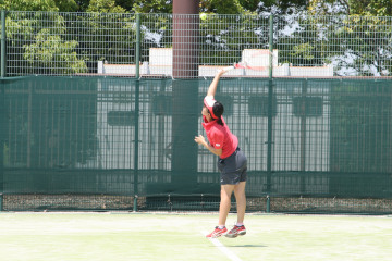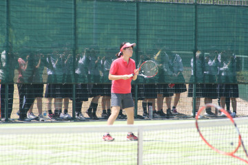 硬式テニス部女子は、5月30日(土)、高校総体県大会団体の部に出場した。県内の強豪校が東山公園テニスコートに集結。 開会式後の1回戦で大府高校とダブルス1試合、シングルス2試合を戦い、3対0で完勝。2回戦は難敵の名経大市邨高校と対戦。善戦及ばず0対3で負け、ベスト16にとどまった。 今回で引退する3年生の思いをしっかりと受け取り、さらなる充実と活躍を期待したい。
