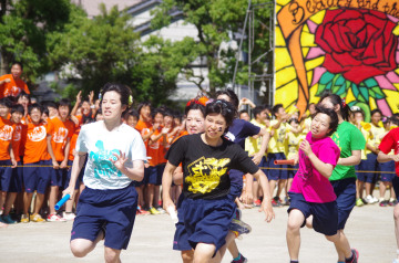 雨で順延となったのは平成になってから1回あるかないかということだそうですが、6月4日、昨日とはうって変わってベストコンディションのもと、「Show win! 飛躍の幕開け〜笑顔の花を咲かせましょういん」をテーマに体育祭が開催されました。