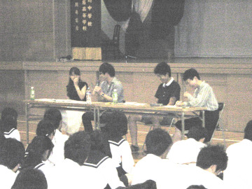 愛知教育大学・名古屋市立大学・南山大学 例年より少ない人数でしたが、卒業生たちは自分の受験生活を振り返りながら、志望校を決めた時期や受験勉強を本格的に開始した時期、夏休み・2学期・受験直前の過ごし方や、自分なりの学習法、役に立った参考書や問題集など、様々な観点から体験を話してくれました。中には質問に答えるための下原稿を10ページにわたって用意する人もいて、後輩に対する熱い思いがひしひしと伝わってきました。