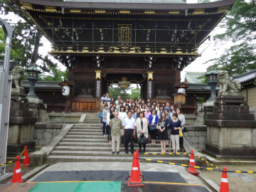 7月1日(水)に、PTA会員41名と職員4名の合計45名が立命館大学くさつ・びわこキャンパスを訪問しました。大学側からは入試政策とアドミッションポリシーについての説明があり、学生ボランティアによってキャンパス内を案内されました。会員の皆さんは大変熱心に説明を聞き、近代的な施設に圧倒されていました。午後は京都まで足を伸ばし、北野天満宮と八坂神社で参拝し、大学の合格を祈願しました。