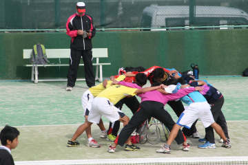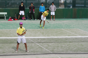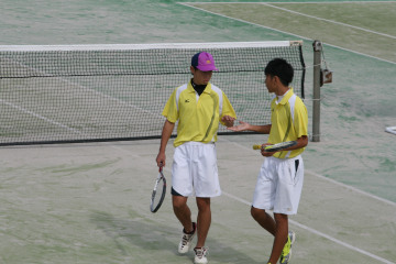 10月31日(土)、男子ソフトテニス部は新人戦県大会に出場。一宮市テニス場で団体戦1回戦成章高校と対戦。 第1ペアが2−4ゲームで接戦負け。第2ペアが4−3で勝ち、勝敗は第3ペアに持ち越されたが、0−4で負けてしまいトータル1−2で敗戦し、2回戦進出ができなかった。 この悔しさをバネにして県大会でも勝ち上がれるよう期待したい。 (文・写真:校長)