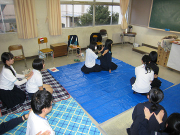 また、日本赤十字社から中島さんを講師にむかえ、身近にあるものでの応急手当の練習や誰でもできる支援の方法を学びました。特に、100ccのお湯で作るホットタオルやマッサージは普段でも活用できると思います。興味のある方は、JRC部員にお声をかけてください。