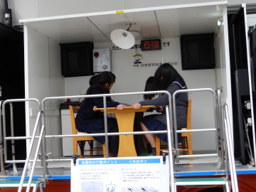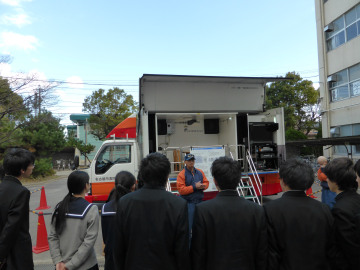 12月17日(木)の午後に、名古屋市消防局のご協力により起震車体験をしました。 起震車は最大震度7までの体験ができ、想像以上の揺れに家具の固定はしっかりしないといけないと実感しました。