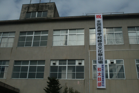 和太鼓部全国大会出場を祝う垂れ幕架かる!