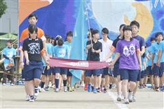 6月8日、気温もあまり上がらないベストコンディションのもと、 「魅せる魂 全力青春」をテーマに体育祭が開催されました。 松蔭の体育祭は各学年1クラスずつの縦割り3クラスでひとつの「群団」をつくり,競技,群団発表,衣装,パネル,マスコットなどを競います。約850名の保護者、卒業生の見守る中、約2週間の準備の成果を披露しました。
